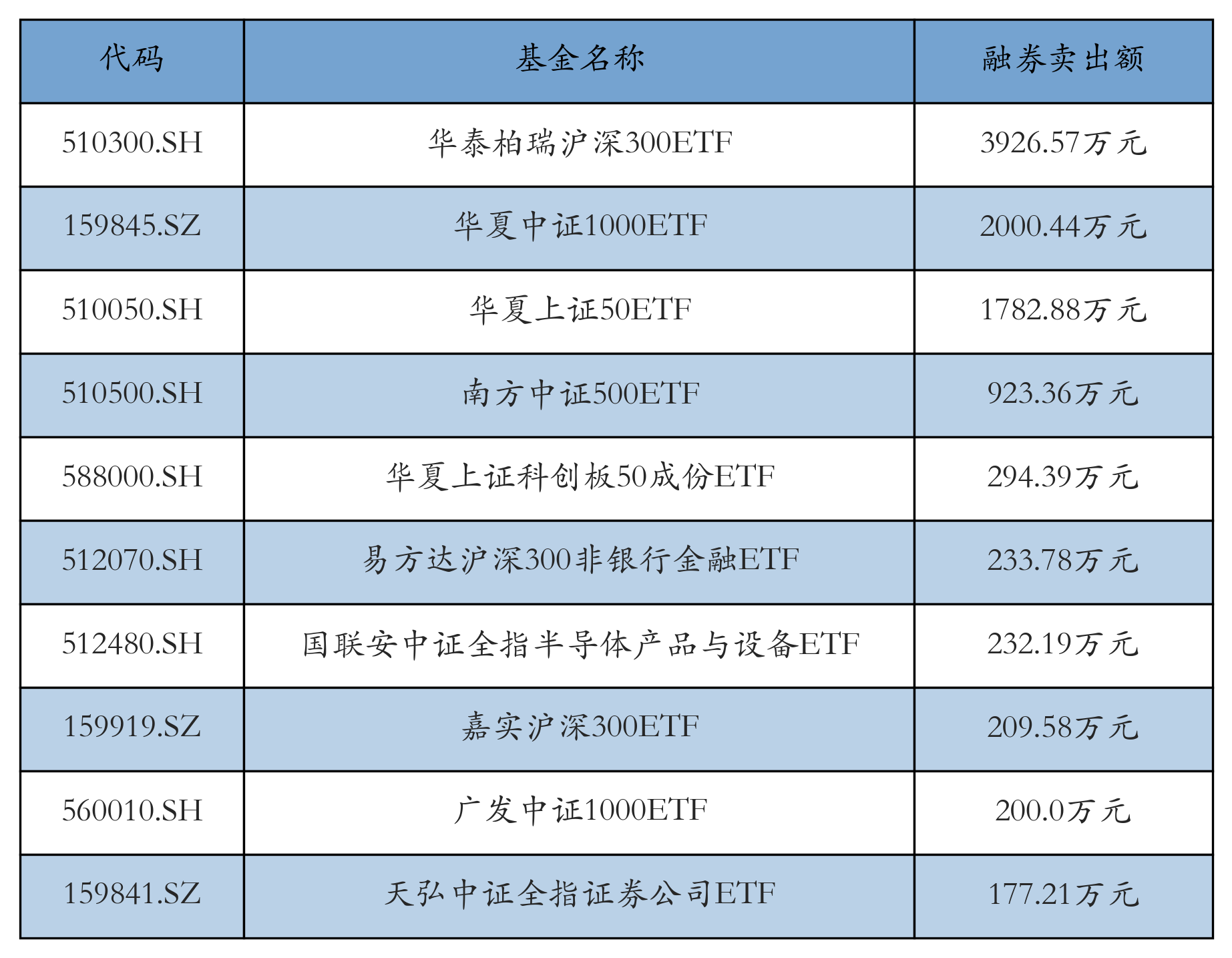 12月8日ETF融券卖出额前三位分别为:华泰柏瑞沪深300ETF(3926.57万元)、华夏中证1000ETF(2000.44万元)和华夏上证50ETF(1782.88万元)正规的配资公司,前10具体见下表: