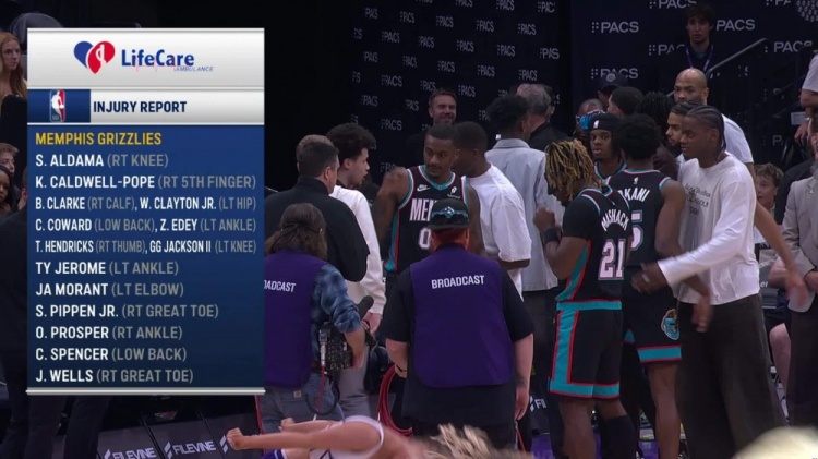 灰熊VS爵士,转播方给出灰熊伤病名单,多达14人,分别是: