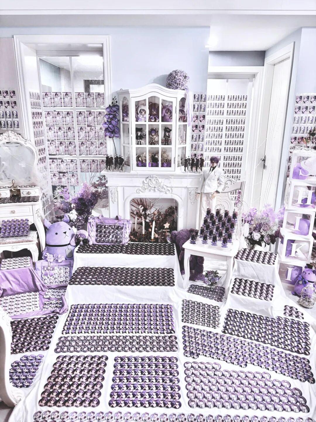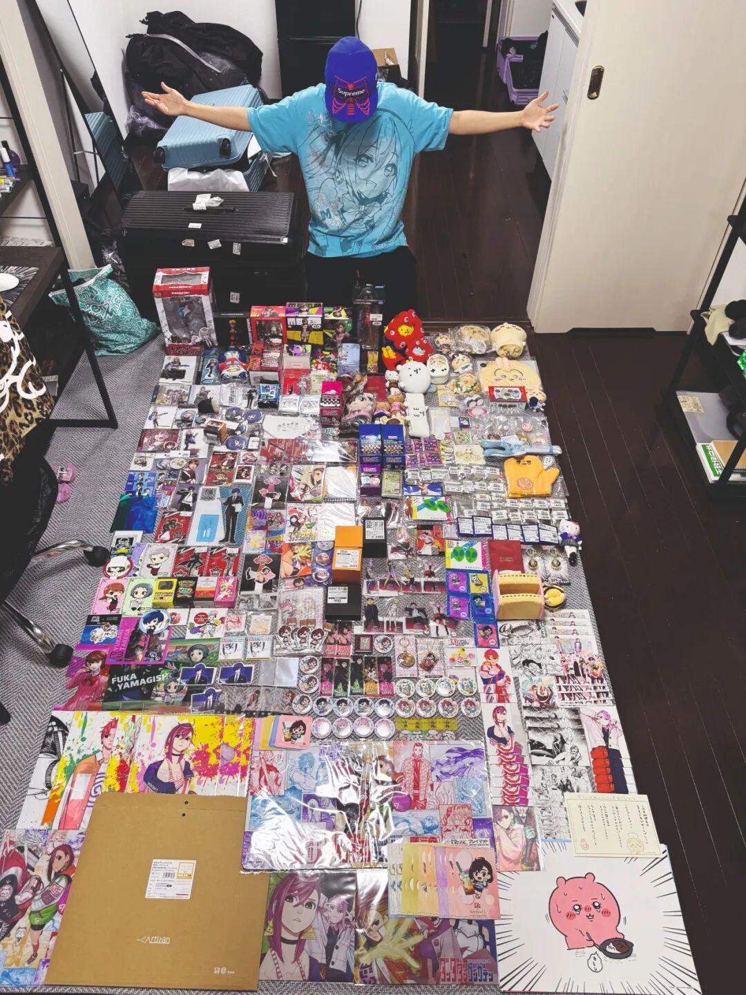 将大量特定角色的周边按款式、类别精心排列后拍照,用壮观的阵势彰显对角色的深度热爱。