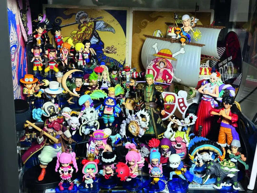 茄子最喜欢的谷子是立体物,比如模型手办,那些让人感觉更真实的东西。“高中时我跟周围很多同学关系都特别好,大家知道我最喜欢海贼王,那年生日他们每人给我买了一个小模型,大家凑了一整团海贼王的人。我当时特别特别感动,虽然后来我知道那些都是假的,但当时我觉得 ‘哇,这个礼物太珍贵了’,因为大家都没有钱嘛,每人花十多块钱,齐心协力给我凑了个百来块钱的,就特别感动。”后来即使买到了正品,那个拼来的心意也一直摆在茄子家,那是她最珍惜的收藏。