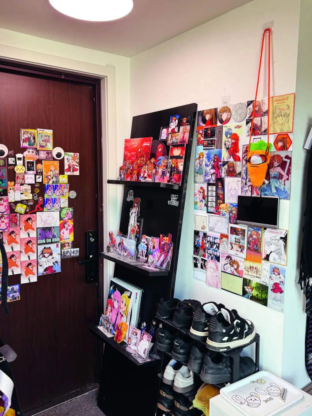 通过装饰大量动漫周边来打造一个充满视觉冲击力的私人空间,墙壁、家具、装饰品都被赋予角色印记,成为独属于自己的二次元结界。